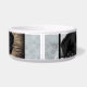 Modern abstract grey background with dog`s name in black script and 2 photos. This dog bowl comes with a dog`s name in black script and 2 photos - personalise the bowl with your dog`s name and insert two of your photos into the template.