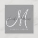 Modern Grey Elegant Script Signature Monogram Logo Square Business Card