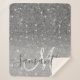 Modern Grey Glitter Sparkles Personalised Name Sherpa Blanket