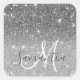 Modern Grey Glitter Sparkles Personalised Name Square Sticker