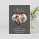 featuring an elegant script and a beautifully framed heart-shaped photo. The sleek grey colour palette exudes contemporary sophistication, while the delicate script adds a timeless touch. Perfect for couples seeking a stylish and romantic invitation that captures the essence of their love story.