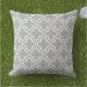 Stylish pillow features a modern decorative Moroccan quatrefoil pattern in white. Customise the grey background to coordinate with your outdoor decor.