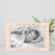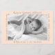 Modern and sweet baby announcement is perfect for black and white photos especially and features a pastel salmon background with grey font. Each of the four sides is customisable to contain a different detail about baby. A 1/2 sheet size that can be added to baby's scrapbook or photo album insert.
