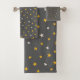 Modern grey pattern white yellow stars bath towel set