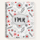 Modern Grey Red Floral Monogram Recipe Notebook
