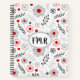 Modern Grey Red Floral Monogram Sketch Notebook