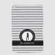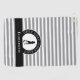This modern grey and white striped golf towel features a female golfer silhouette framed in a black and white emblem with the repeating text “GOLF GOLF GOLF GOLF.” A sleek black band holds a customisable template for a name, initials, or short text. The neutral palette keeps the design stylish and feminine without being overly girly, making it a perfect personalised gift for women golfers. All colours and text can be edited in Zazzle’s design tool.