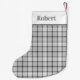 This monochrome Christmas stocking features a modern grey tartan (plaid) pattern. Personalise it with a name in matching grey font.