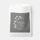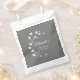 Pretty and modern bridal shower favour bags design features a spray of white flowers and white customisable text on medium grey background