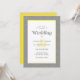 Modern Grey & Yellow Abstract Leaves Pattern wedding design features a modern abstract leaves pattern outlined in illuminating yellow on an ultimate grey background. Bold calligraphy and script are in grey & yellow on a white background. A trendy template complements the unique calligraphy design. This design is offered exclusively by Invitation Suites. The back of the card is solid yellow. This design is also available with a solid grey or leaf pattern back. Be sure to see the collection link on this page to view all of the matching items! Please direct questions or custom requests to invitationsuites@gmail.com.