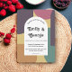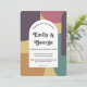This modern wedding invitation is perfect for the couple that wants to make a stylish statement. The invitation features bold retro calligraphy on a white arch with a vibrant and groovy abstract arches background. The artistic combination of old and new gives any event an inviting and unique touch. Whether you’re planning a simple gathering or a big celebration, this invitation will make sure your guests know it’s an occasion to remember.