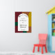 Welcome your guests in style with our modern wedding welcome poster! Featuring retro calligraphy on a groovy abstract arches background, this poster is the perfect way to set the tone for your wedding reception. Our artistic design is fully customisable, meaning you can add your own personalised touch to make your poster truly unique. Choose from a variety of different colours to match your wedding theme or personal style. The retro calligraphy adds a touch of elegance and sophistication to the playful design, making it perfect for any couple who wants to balance fun and glamour. The groovy abstract arches background adds a pop of colour and personality that will make your welcome area stand out. Our high-quality printing process ensures that your poster will look amazing and professional, and your guests will be delighted to see this stylish and fun welcome sign. Overall, our modern wedding welcome poster with retro calligraphy on a retro colourful groovy abstract arches background is a must-have for any couple who wants to make a bold and stylish statement at their wedding reception. With our customisable options and vibrant design, your guests will feel welcomed and excited to celebrate your special day.