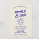 This wedding invitation is perfect for your wedding with unique design. An elegant unique simple minimalist white cream wedding template invitation. Which features plain white creamy background. And blue bold grunge funky bride's and groom's first names under it a hand drawn cake. And editable info. Affordable and it is also digital electronic e-invitation if you want to send it by text or email. All the info are customisable by clicking on the personalise button. So Grab it and make it yours so you make you invites engaged and excited .