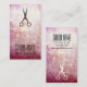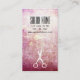 A modern, grunge business card with a dark pink background and a black silhouette of a pair of scissors/shears on the front, with a white one on the back. Perfect for hair stylists, hairstylists, hair dressers, cosmetologists, cosmetology, salons and more!