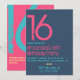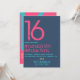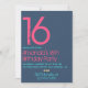 Trendy blue, yellow and pink grunge typography birthday invite customisable to your specifics.