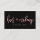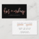 Modern chic printed rose gold and black business appointment card with trendy brush script calligraphy reading ' hair and makeup ' over your custom name. On the back is space for your client's next appointment along with salon and personal information. Make it your own unique branding tool by customising text style, colours, sizes under "customise further".