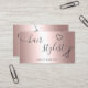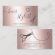 Modern hair stylist rose gold metallic scissors business card