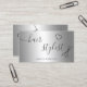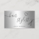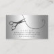 Modern hair stylist silver metallic foil and scissors with a modern elegant typography , a heart and hair.