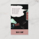 The back provides all essential salon information in a clean, organised layout against a black background with pink text: