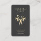 Modern Hairstylist Black Gold Scissors Floral Business Card