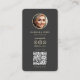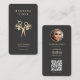 Introducing the ultimate symbol of professionalism and sophistication - the Elegant Hairstylist Barbershop Gold Scissors Floral Modern business card. With its stunning gold scissors floral logo, round photo, qr code, and customisable text in opulent gold, this card exudes elegance and refinement.