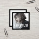 Hairstylist modern photo square business card. The elegant and clean layout with a thin frame on the front and backside of this photo business card allows you to showcase your own photo on the front side of the card. Your profession and name are styled in modern straight bold typography letters. Design suitable for hairstylists, makeup artists, bloggers photographers, and other creative businesses. The photo on the business card is only a sample photo, please upload your own. Designed by Luxbelle design.