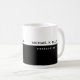 A modern half-white and half-black coffee-mug personalised with your own name and profession or any other special text