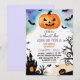 Elevate your baby shower with this modern Halloween invitation. The bold black and orange colour scheme sets the mood, and the text adds a lighthearted touch. This unique design will make your guests eager to RSVP and join the celebration.