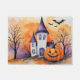 Modern Halloween Orange Pumpkin Haunted House Bats Doormat