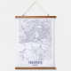 Modern wood topped tapestry wall art features a minimalist style city map of Hamburg, Germany.
