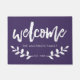 Easily personalise this modern eggplant purple welcome doormat with your family name and year.