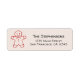 A fun, whimsical Christmas return address label design. With a red, hand drawn gingerbread man set against a cream/pink background, easily change the dark grey typography with your own name and address.