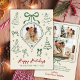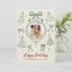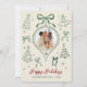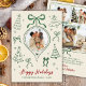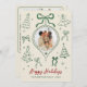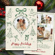 Modern Hand-Drawn Green Bows Photo Christmas Happy Holiday Card