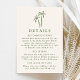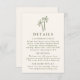 Add a touch of natural elegance to your wedding stationery with this details card, showcasing a hand-drawn green palm tree at the top of a soft cream background. Ideal for beach, tropical, or destination weddings, this charming design provides space for important details such as accommodations, reception information, and your wedding website. A thoughtful and stylish way to keep your guests informed.