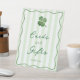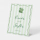 A modern stripes Cards & Gifts pedestal sign for a St Patrick's Day / Irish event or party / shower. The sign features pale green and white stripes, a hand-drawn wavy line border and hand-painted watercolor shamrock (four leaf clover). All colors of all elements (except the shamrock) can be customized to match your event's colors!