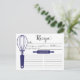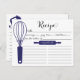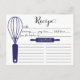 Contemporary Bridal Shower Kitchen Recipe Cards featuring a stylish hand lettered black typography script font with a blue whisk, rolling pin & hand mixer. The front of our recipe card offers room for a recipe title, from the kitchen of and ingredients space. Flip our recipe card view directions. Visit our shop for matching bridal shower invitations Available in our shop in a large assortment of popular wedding shower colours. Perfect bridal shower invitation insert for a stock the kitchen bridal shower.