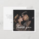 Celebrate and share your cherished wedding memories with our personalised photo thank you card. Featuring your chosen couple’s photograph as its centerpiece, this card beautifully captures the essence of your special day. Accented with an elegant script "Thank You" positioned gracefully across your image, this card blends sentimentality with style. Perfect for expressing your gratitude to friends and family in a way that’s both intimate and memorable, it's an exquisite token of a day filled with love.