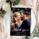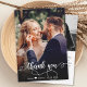 Modern Hand Lettered Wedding Photo Thank You Card. Modern Stylish wedding thank you postcard template featuring a full vertical photo on the front with the text "Thank You" in a swirly hand lettered typography script font in white on the picture. 2-sided card with 2 photo. Personalize the custom name and thank you message. The name template includes a little white heart. If you prefer to handwrite your note, just delete the sample text to make more space. If You need help or matching item, please contact to me!