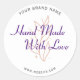 Modern thank you script Handmade Sticker. Modern minimalist and stylish white and black sticker for small business. With an elegant signature script font, all the colours are editable, add your logo. Perfect for Handmade bakery business, cupcakes business, chocolate business, Crafts business, Art stuff business other handmade small business for promotion.