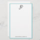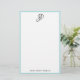 Modern Hand Script Monogrammed Simple Template Personalised Blue Green White Stationery Paper.