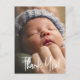 Easily personalise this vertcal format, thank you postcard and announce the birth of your baby at the same time. Customise with your own photo, greeting, baby birth, name, stats, and sign off. A beautiful keepsake and thoughtful card, modern design Script Typography for the word "thank you" on the front. Vertical format card.