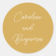 Stylish Modern Handwriting Script Wedding Names Classic Round Sticker in Dusty Yellow