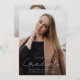 Announce your graduate's achievements and plans with this stylish, modern photo graduation announcement. The front of the announcement displays the graduate's full-bleed vertical photo. "Graduate" is displayed in a trendy, handwritten blush pink script. Personalise the announcement with the graduation year, graduate's name, and school name. The announcement reverses to display an additional photo with your custom text below in black lettering with a solid blush pink background. This 2 photo graduation announcement is perfect for high school or college graduations.