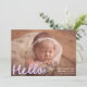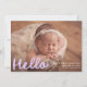 Modern Handwritten Hello Lavender Photo Birth Announcement