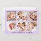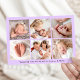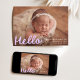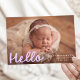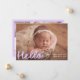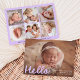 Welcome your little one in sweet style with this whimsical photo birth announcement featuring your baby’s horizontal photo with “Hello” displayed in a playful lavender script overlay. Add your baby’s name, birth date, and stats on the front to create a truly personal keepsake. The back showcases a collage of six square photos with space below to include family names or a heartfelt message. A lovely choice for baby girls or dreamy, pastel-inspired themes.