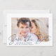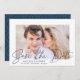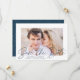 Announce your wedding date in style with our trendy modern photo save the date cards. The design displays your engagement photo with "Save the Date" in a navy handwritten script overlay. Personalise the front of the save the date photo card by adding your names, wedding date, and wedding location. The simple save the date photo card reverses to a navy and white dotted geometric pattern.