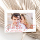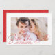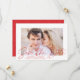 Announce your wedding date in style with our trendy modern photo save the date cards. The design displays your engagement photo with "Save the Date" in a red handwritten script overlay. Personalise the front of the save the date photo card by adding your names, wedding date, and wedding location. The simple save the date photo card reverses to a red and white dotted geometric pattern.
