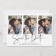 Modern Handwritten Save the Date Multiple Photo Card in a font that is elegant and evokes a romantic handwritten feel. Designed to use three of your favourite photos for added customisation. Easily add your names and dates for a truly personalised design.