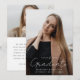 Announce your graduate's achievements and future plans with this stylish, modern photo graduation announcement. The front of the announcement displays the graduate's full-bleed vertical photo. "Graduate" is displayed in a trendy, handwritten white script. Personalise the announcement with the graduation year, graduate's name, and school name. The announcement reverses to display an additional photo with your custom text shown below in black lettering. This 2 photo graduation announcement is perfect for high school or college graduations.