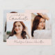 Announce your graduate's achievements and plans with this stylish, modern photo graduation announcement. The front of the announcement displays 2 photos - 1 horizontal and 1 vertical photo. "Graduate" is displayed in a trendy, handwritten black script with a blush pink background. Personalise the blush pink graduation announcement with the year and the graduate's name. The announcement reverses to display an additional photo with your custom text in black lettering. This 3 photo graduation announcement is perfect for high school or college graduations.
